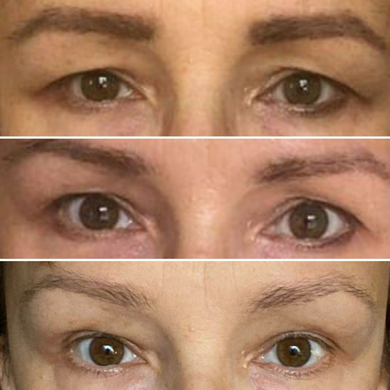 Zaburzenie balansu między przednią a tylną taśmą powięziowo-mięśniową powoduje, że brwi i powieki opadają.